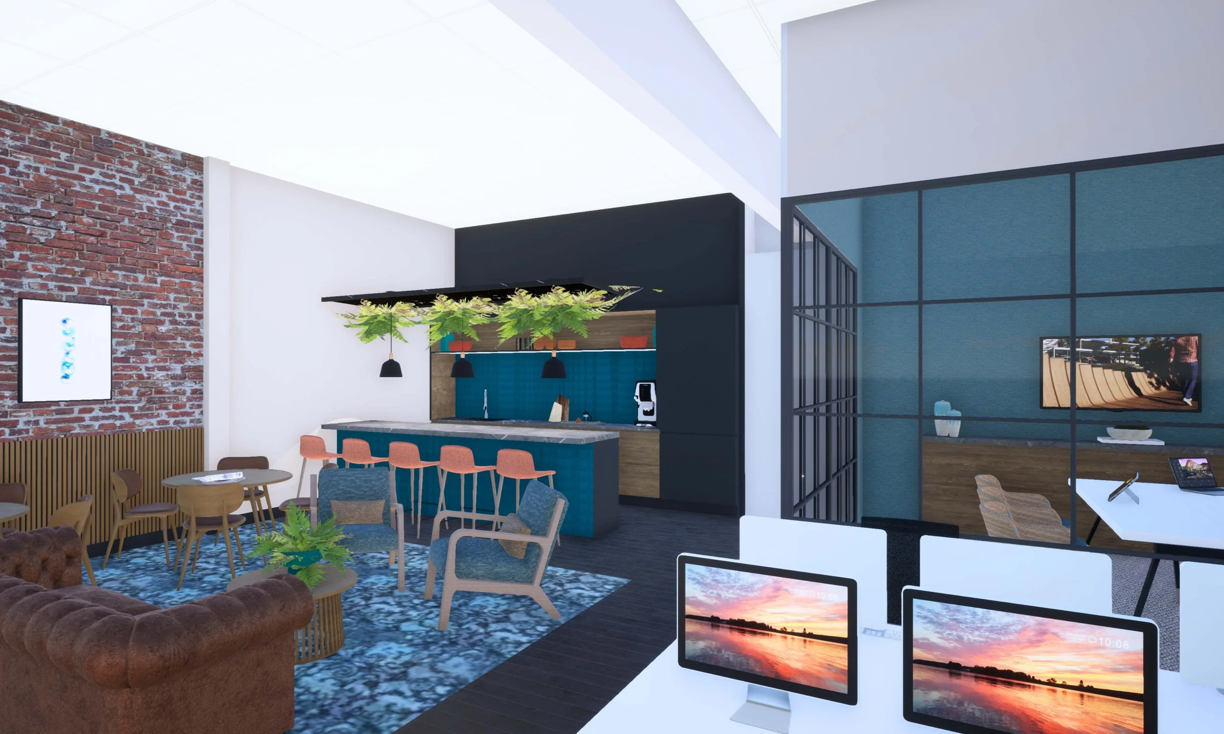 The brief was to create a series of flexible co‑working spaces that maximise occupancy while maintaining comfort, usability and strong visual identity. The interiors needed to respect the Assay Office’s industrial legacy while introducing softer, hospitality‑inspired elements to attract modern businesses and creative tenants.