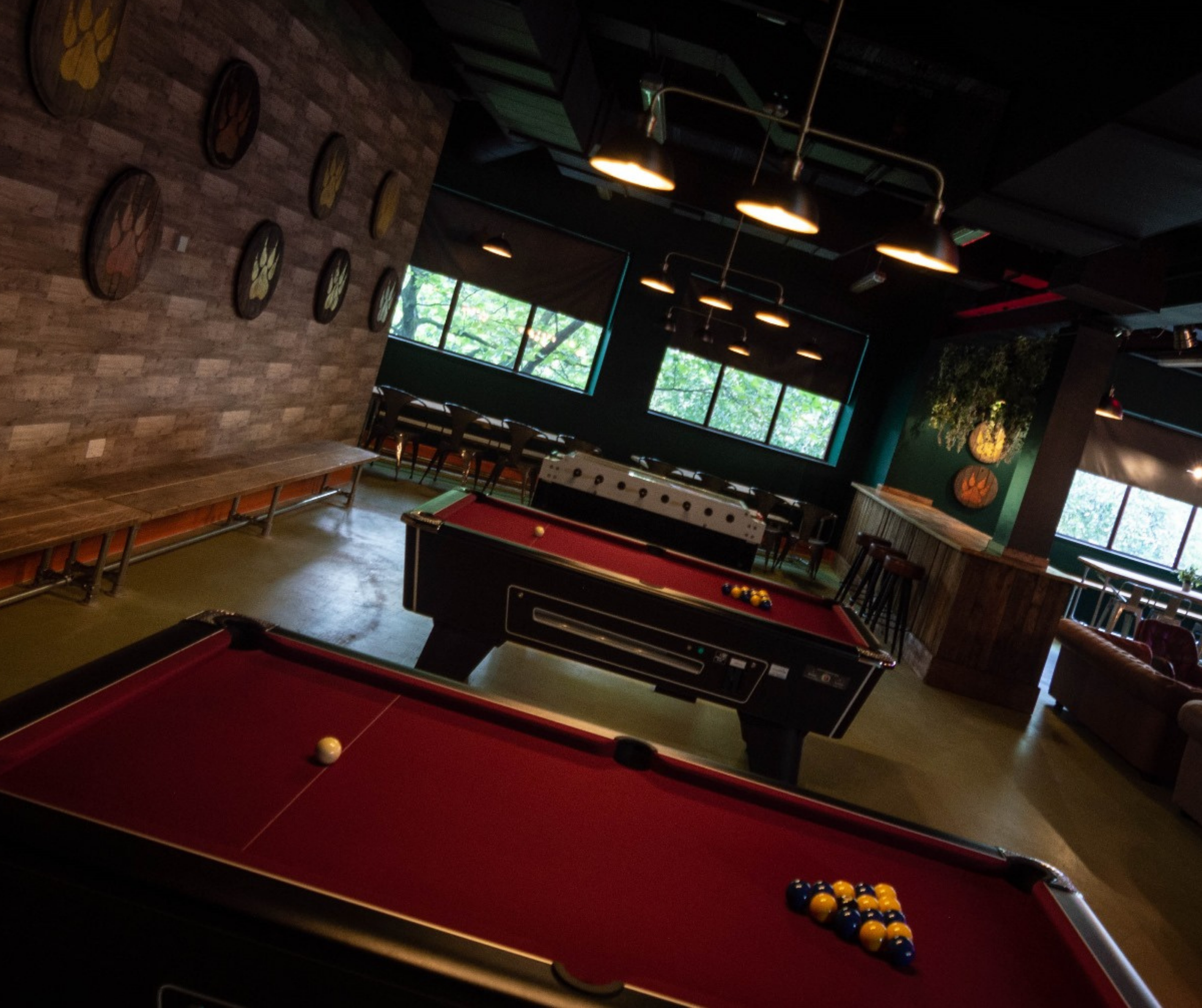 These elements are contrasted with neon accents, Edison bulb lighting and contemporary furniture — creating a dynamic atmosphere that feels energetic, social and unmistakably modern.