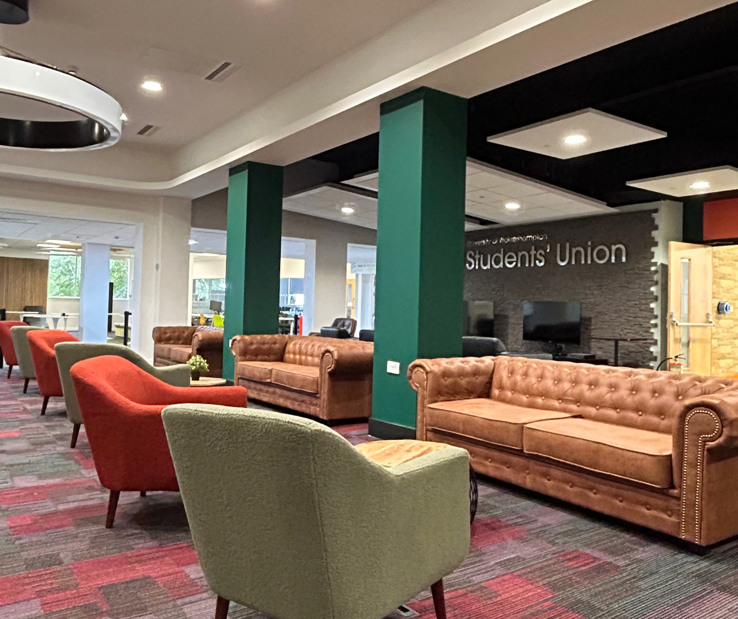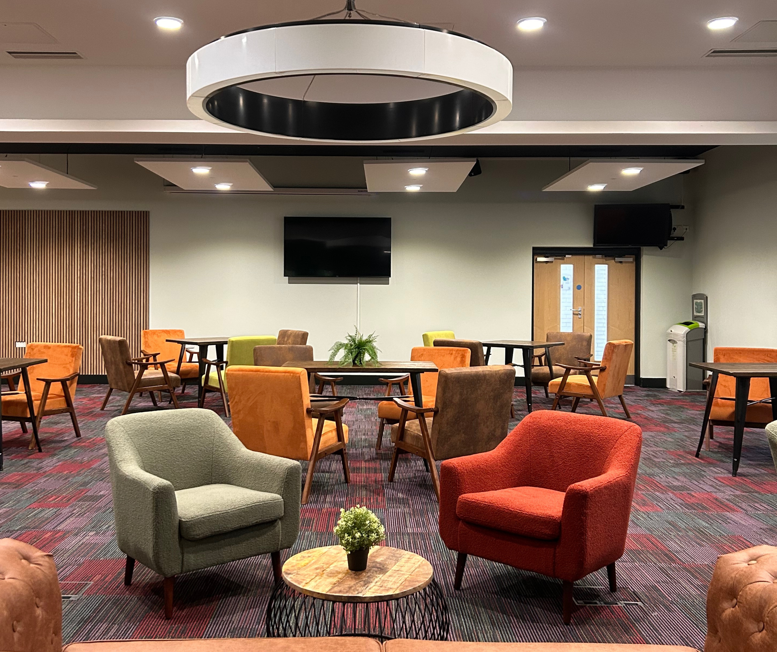 Shropshire Interior Design Studio was appointed to reimagine The Den at University of Wolverhampton — creating a contemporary student gathering space that moves beyond the traditional campus environment.